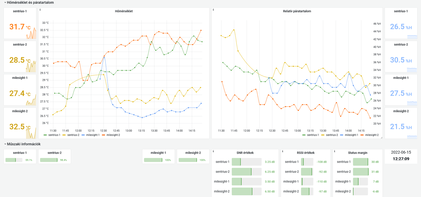 Kültéri, időjárásálló, nagy hatótávolságú vezeték nélküli szenzorok – feladatuk az érzékelés és a mért adatok továbbítása.