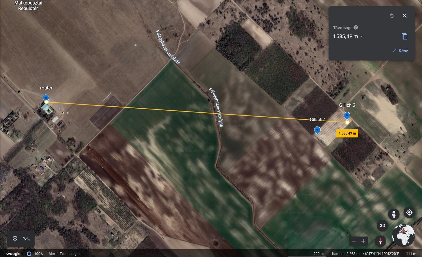 A szenzorok és a bázisállomás közt az adat átjátszás hatótávolsága körülbelül 1-3 km,